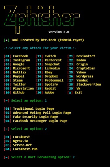 - Zphisher: Zphisher, sosyal mühendislik tabanlı bir araçtır ve Kali Linux’ta sıklıkla kullanılır. Bu araç, phishing saldırıları oluşturmak ve kullanıcıların kimlik bilgilerini ele geçirmek için tasarlanmıştır. Zphisher, kullanımı kolay bir arayüze sahiptir ve birçok farklı phishing şablonu sunar. Saldırganlar, Zphisher aracılığıyla gerçekçi phishing kampanyaları oluşturabilir ve kullanıcıları aldatmaya çalışabilir. Bu araç, siber güvenlik testlerinde sosyal mühendislik saldırılarını simüle etmek için idealdir.